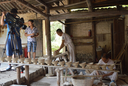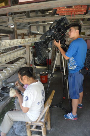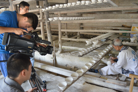 当天上午9点,栏目组首先定格在清代镇窑、明代葫芦窑、宋代龙窑、元代馒头窑等历代窑系的拍摄。随后,同样还在古窑的手工制瓷作坊对传统手工制作的拉坯、利坯、施釉、画坯等工序也完美的展现在镜头之中。“景德镇古窑就是‘活的历史’,这里的每一角落,都是历史再现”,负责拍摄《国宝档案》栏目组的编导陶梦清说,而这些,也必将成为《皇帝的窑火》呈现在观众面前的一大看点”。