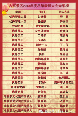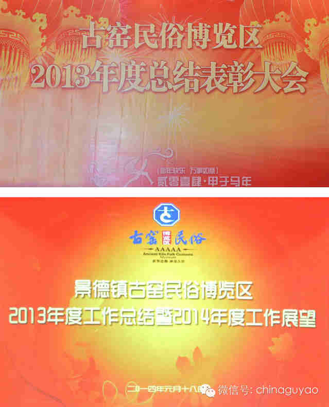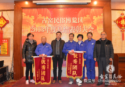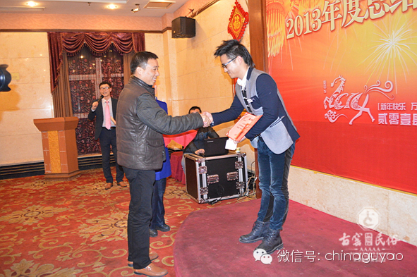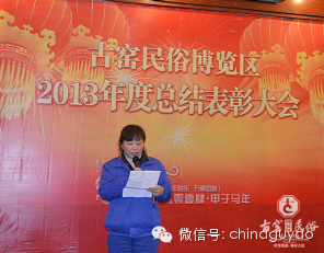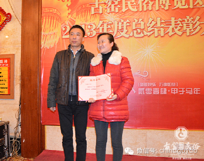 元月17日晚19:30分,景德镇古窑景区全体员工在陈武平董事长的带领下,在伊龙大酒店召开了2013年度总结表彰大会,会上,各部门及获奖团队纷纷上台领奖,由董事长亲自颁发获奖证书和奖金,在荣获奖项的时候,大家似乎都非常激动,整个会议在大家积极而充满激情的感言中达到高潮,视乎他们都有太多的感慨要表达,徐徐回望过去的一年,需要总结,需要凝聚士气,需要畅想更加美好的明天,而这一切都将在这次年会上得以展示。