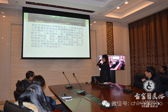 紧接着的第二天,元月18日晚19:30分,古窑景区2013年度工作总结暨2014年工作展望大会在古窑1号会议室隆重举行。整个会议历时三个小时,公司副总依次回顾总结,立足新起点,展望未来,会议最后陈武平董事长做重要讲话,肯定了2013年大家共同努力取得的非凡成绩,同时对2014年各部门的工作提出了殷切希望和更高的要求,激励大家齐心协力,共创古窑新辉煌!