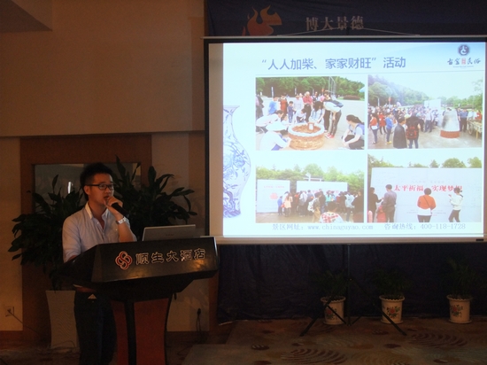 市旅游局局长尧宁生在会上介绍,2010年曾在温州举行的全国智慧旅游大会,留下深刻印象。温州当时就已经借助智慧旅游飞向全国,走向世界。此次来温州是向温州旅游界学习,学习温州旅游的发展、改革和开放。诗画山水,传奇温州,以浙江精神为代表的温州值得全国人民学习,值得景德镇人学习,温州的温暖、温柔、温情、温度让人备感亲切。他还说,温州创造了改革开放的传奇,景德镇创造了制瓷历史的传奇,相信两个传奇地的旅游合作,一定会更有创意、新意和亮点,推动两地旅游产业共同发展。最后他说,景德镇是一座有魅力的城市,需要用心去沉淀、用心去感悟,诚挚地邀请与会的温州旅游界人士和温州市前往景德镇,相信景德镇会让你不虚此行,尤其是最有价值的陶瓷购物游会让你赚回你一生的旅游。