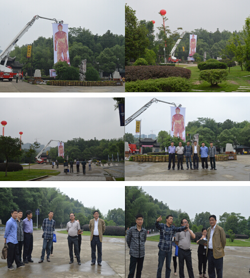 古窑将重修塑造窑神童兵青铜像,图为2014年5月18日上午,在景德镇古窑昌南印象广场测试窑神画像的高度。