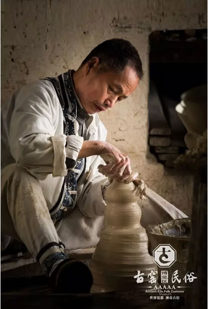 古窑民俗博览区内,一位老艺人在“拉坯”