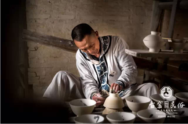 古窑民俗博览区内,老艺人“利坯”