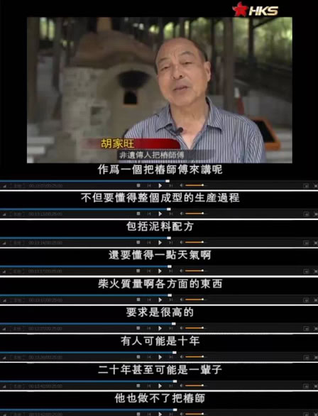 非遗传承人把桩师傅胡家旺说:“作为一个把桩师傅来讲呢,你不但要懂得整个成型的生产过程,包括泥料配方,还要懂得天气、柴火质量,各方面的东西都要有所涉及。不涉及的话对整个烧成技艺很难提高,就不能烧出合格的产品出来,要求是很高的。有人可能十年二十年甚至可能是一辈子,他也做不了把桩师傅”。