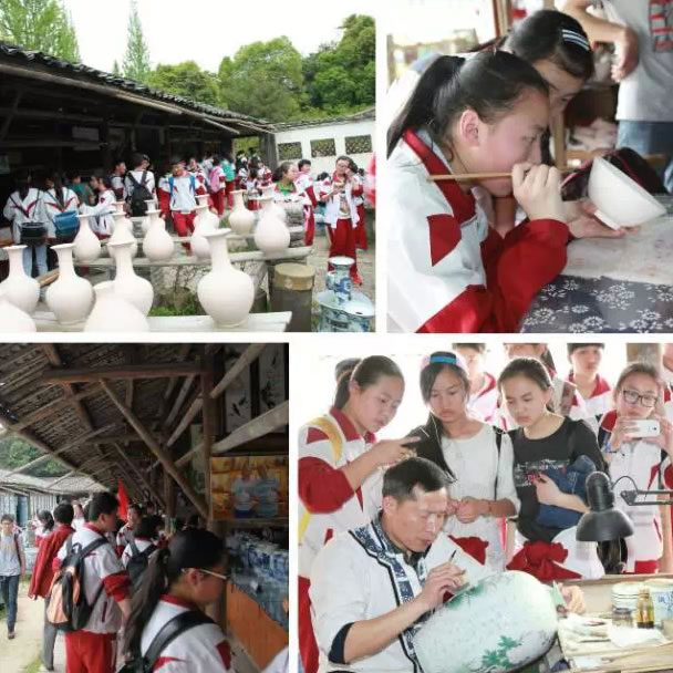 昨日,来自安徽安庆石化一中的学生们分乘20辆大巴来到古窑。他们在景区内赏美景、学知识,充分感受古窑的生机盎然和深厚人文底蕴。同学们一边聆听着导游的讲解,一边欣赏着景区内的秀丽风景,茂林修竹苍翠蓊郁,山绕水环,亭台点缀,桥榭相映,湖光山色妩媚竞秀;自然景观和人文景观交相辉映。讲述中国最古老制瓷生产技艺手工制瓷作坊、蕴含丰富人文知识和历史积淀的清代镇窑,都让老师和同学们十分欣喜,肆意的沉浸在这陶瓷文化的大世界中。