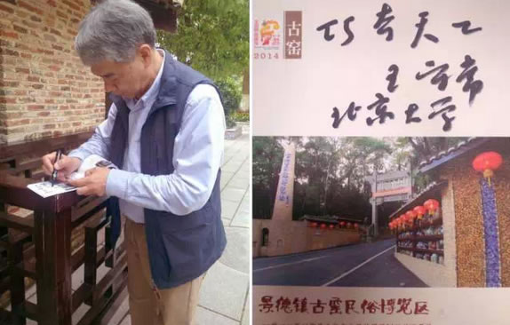 王守常教授所一贯秉承的,就是儒家入世的精神。他倡导的“返本开新”,就是说我们中国人要回到自己文化的传统中,把我们的文化价值观念介绍出去。在参观完古窑后,王教授对古窑陶瓷文化和旅游的完美“发酵”连声称赞,并欣然提笔留下“巧夺天工”以其浓厚的笔迹充分地给予肯定古窑景区的陶瓷文化韵味,他希望古窑能越办越好,将来为传统陶瓷文化的返本开新的做出更大贡献。