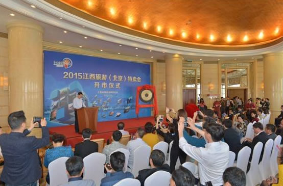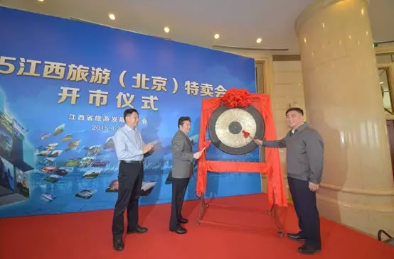 25日上午,2015江西旅游(北京)特卖会正式启动。国家旅游局副局长李世宏,江西省政府副省长朱虹,省政府副秘书长宋雷鸣,江西省旅发委主任王晓峰,上饶市委常委、三清山风景区党委书记陈晓平,上饶市政府副市长朱寅健、鹰潭市政府副市长辜清、宜春市政府副市长周志平等领导出席启动仪式并来到特卖卖会现场巡展。