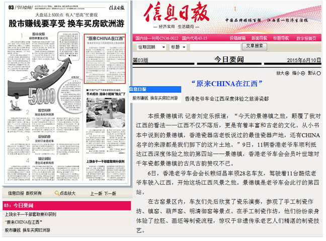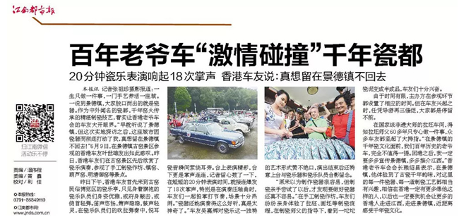 @香港老爷车会会员叶世雄:我们从香港千里迢迢开车过来,相聚千年瓷都。在江西这一路,我们看到了风光,看到了文化,也看到了历史。china是中国,也是瓷器,景德镇的瓷器闻名已久,现在,亲眼看到了,亲自体会到了,我只能用两个字形容我的感受----震撼!我们听到了美好的音乐,买了最喜欢的瓷器,满载而归,乐而忘返。我们有个车友买了一车东西,他也太让我们震撼了。我们很高兴有这个机会,也有点遗憾,这个遗憾就是时间短了点。当然这个不重要,我们一定会再来景德镇做深度的旅游。