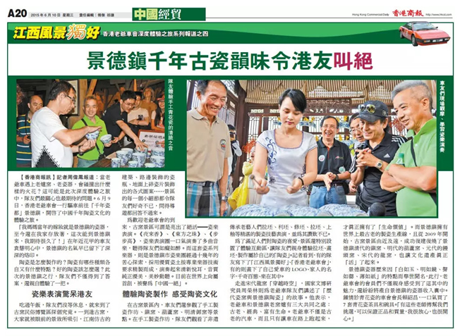 一根木棍穿越千年,一门手艺养活一座城,面对世界上最古老的制瓷生产线,老爷车会员们的共同感受是,回到了古代。欣赏机械化手工制造工艺的他们自然与喜欢传统工艺的老瓷匠们相见甚欢。长期在新加坡生活的说,在他成长的过程并没有亲身体会过这么古老的文化,只在电视和电影当中看到过一些场景,这次来到现场,叹为观止!“那些手艺人花白的头发、脸上的皱纹、专注的表情一下子就深深打动了我”!他对着摄像机开心地说:“看,这个碗是我的处女作!”