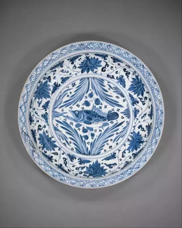 元青花缠枝莲鱼藻纹大盘 直径45.7cm