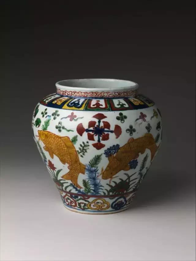 明嘉靖五彩鱼藻纹罐 高23.2cm