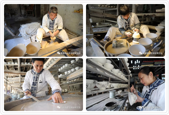 作坊群里,数十名年逾花甲的非遗传承人正向游人生动地展示整个瓷器生产线的手工工序。他们神情专注地拉捏、利坯、挖足、雕刻、绘画、浇釉,仿若无人;当游人询问相关事宜的时候,他们又态度和蔼,知无不言。言谈中得知,瓷器的所有工序,小到颜料的调制,大到瓷窑的建造,都凝结了古人无数心血。